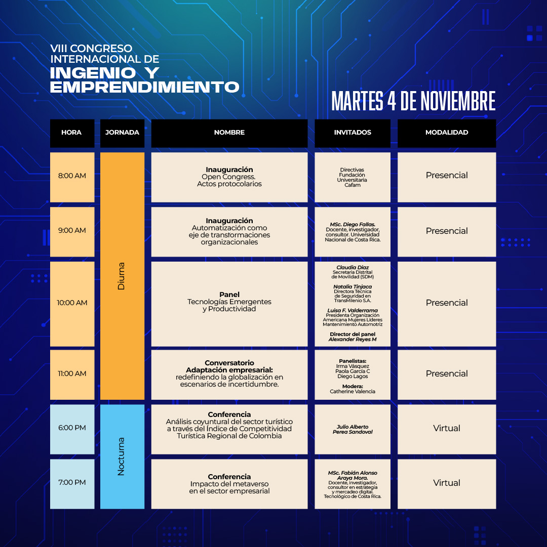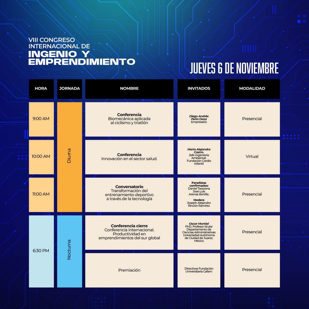 Te invitamos a ser parte del epicentro de la innovación y el conocimiento en el 8º Congreso Internacional de Ingenio y Emprendimiento. Un espacio único diseñado para el intercambio de experiencias transformadoras, el fomento de la colaboración estratégica y el desarrollo de sinergias cruciales entre investigadores, estudiantes, visionarios académicos y la comunidad global.
