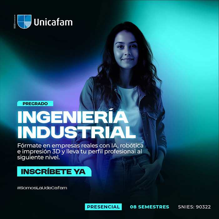En la Facultad de Ingeniería, Tecnología y Ciencias Básicas de Unicafam nos preocupamos por formar ingenieros competentes, íntegros y socialmente responsables en las dimensiones técnica, social, humana y organizacional.